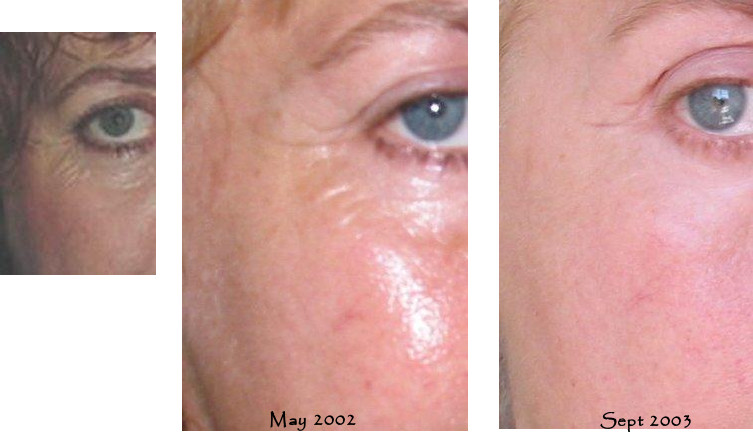 - Skin thickened. In May you can see a hint of a blue vein near my eye brow and some streaks on my cheek. September the veins are hardly visible at all. I attribute that to reversing the thinning skin that is associated with aging.