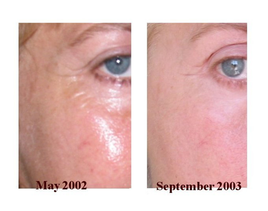 I took these photos myself. I simply hold my digital camera at arms length and shoot. The pictures are taken so that I can monitor changes, or no changes, in my skin. I can see skin details that are not visible in my 5x's magnifying mirror and were never meant for publication. These are raw pictures...clearly...no adjustments, enhancements, corrections or otherwise. I cropped them so that the pictures can load.