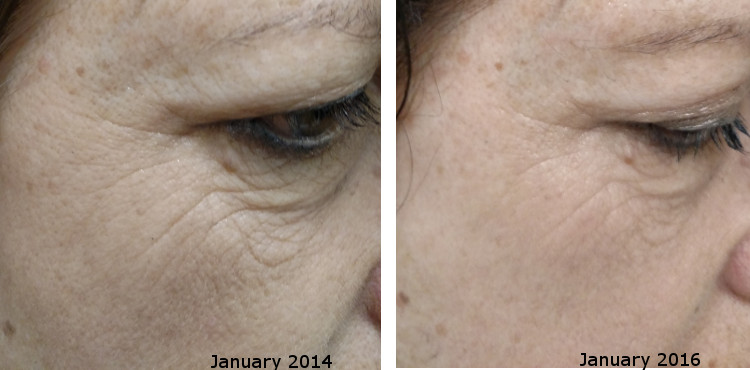 While there are 2 years between photos, this most recent photo clearly shows what it means to reverse signs of aging even while we we continue to age. The skin has tightened, gained elasticity and collagen, skin tone greatly improved